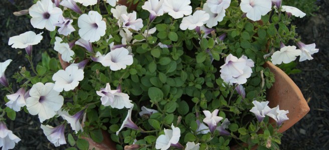 It now serves as the focal point of my garden. I planted white petunias whose subtle beauty attracted my eye immediately. Cast against terracotta, the color combination turned out heavenly. They will eventually drip over the sides creating a sort-of fountain effect.