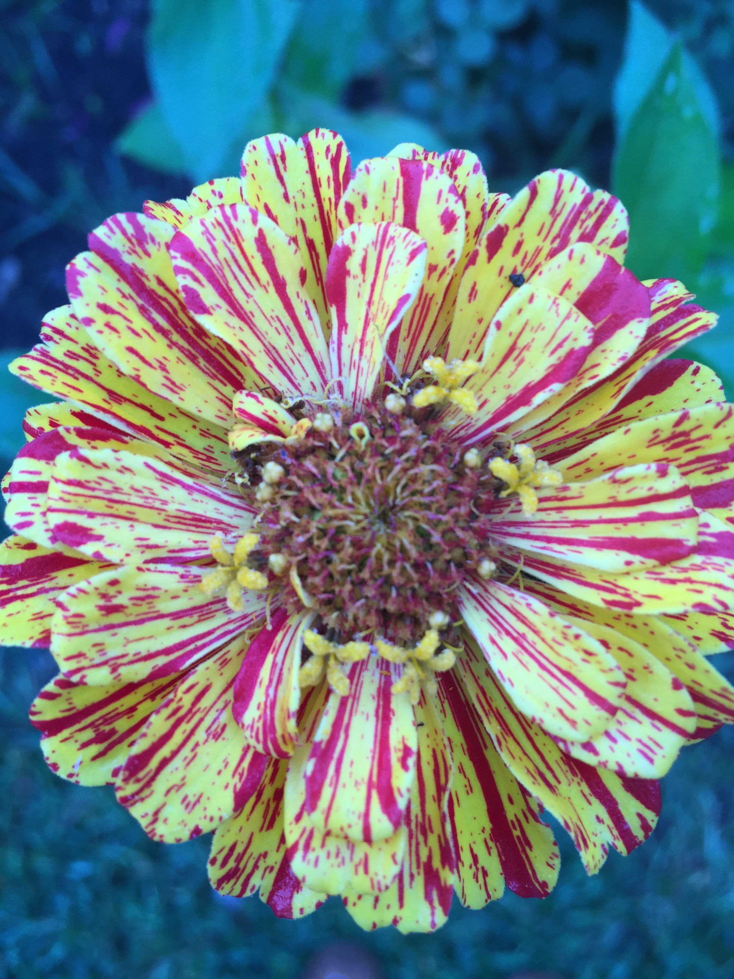 Every year however, the zinnias take over my garden. I plant the little seeds not taking into account the gargantuan things they soon become by late August. The stem spikes and soon branches out to become three feet in width. Perhaps its because I buy the giant cut-again variety.