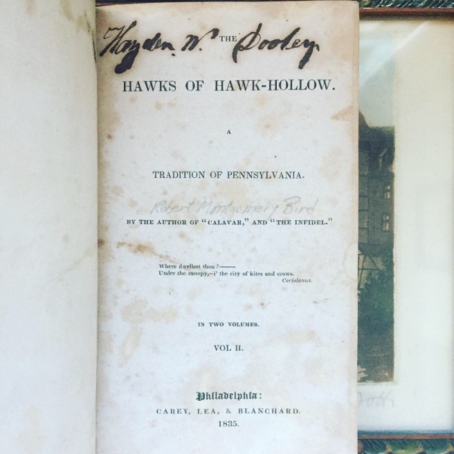 In 1835 a Mr. Hayden W. Dooley journaled this inside Vol. 2 of Hawks of Hawk Hollow, a play by Robert Montgomery Bird, while waiting for a train: