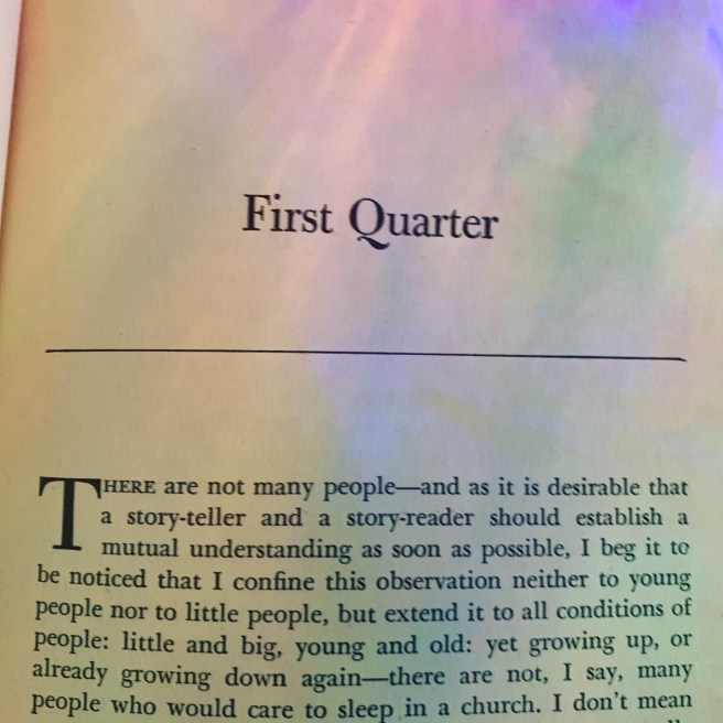 Pictured are the first couple sentences of The Chimes—pulls me right in!