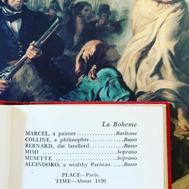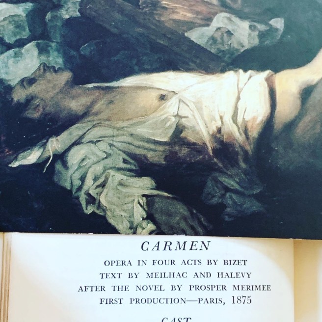 I love opera. Unfortunately no one I know really likes it as much as me. I was sure I would weep like a baby when the curtain went up on La Boheme at the Detroit Opera House. Then I saw Carmen and was enchanted by the cigarette girls. Like rebellious nymphs and sirens they sing: “ in the air we follow with our eyes the fragrant smoke as it rises to the skies….lover’s pretty speeches are smoke! Their transports their vows just smoke!” This song they sing, La Clouche de Sonne, is so good! If you are ever walking on a lit street in the dark and it is gently snowing, do yourself a beautiful favor and play this song for yourself. It seems to know the rhythm of snow. You’ll see the truth of man’s history fall and turn and advance right before your eyes. It’s a remarkable thing. This little book is useful if you frequent operas. It gives a quick summary of each act and where and when it takes place. You can prepare yourself for the performance this way. But…If you can’t get to the opera, every opening night of a new opera at MIchigan Opera Theatre is recorded live and played live on WRCJ radio. You can download the app and listen from anywhere in the world. It’s like home to me all the hosts are familiar to me by voice and name as I’ve been listening since its beginning. .