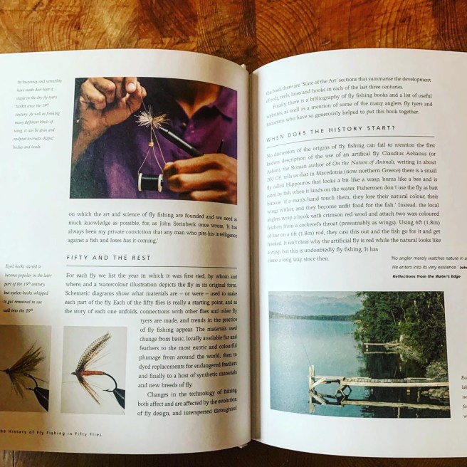 Life is filled with wonder and enchantment when we’re not worried about the fires in Australia. Living life to its fullest means exploring that which enchants us or excites our curiosity. For me that is fly fishing. I’ve never done it but for a long time I’ve wanted to learn this art, not only fishing with flies but learning how to tie them myself(make them). I feel the intricacy of this art would appeal to my ready hands. So through research I found this book and thought I’d start here. The History of Fly-Fishing In Fifty Flies by Ian Whitelaw gives examples of different rivers around the world and which flies are best for these rivers based on the insects and animals that live in the area. I can’t wait to dive into this book and learn more!