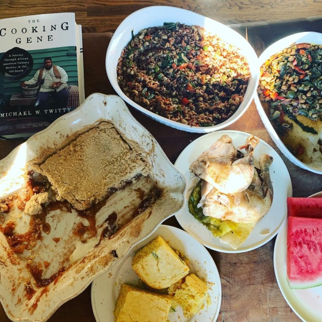 Using the recipes from his book, @thecookinggene traces the food of the enslaved in America and how that food has traveled and morphed through time and the world. Very eye-opening for me. The book traces his family history from Ghana and Sierra Leone to the plantations of Virginia and South Carolina. I cooked some of the food and read some quotes from his book too, and shared his food & his stories with my family. This was one of the best meals I’ve ever made, everything was so good and perfectly seasoned via his recipes. Forgot to take photos throughout, so here are the remnants. Everything was so good! 💕