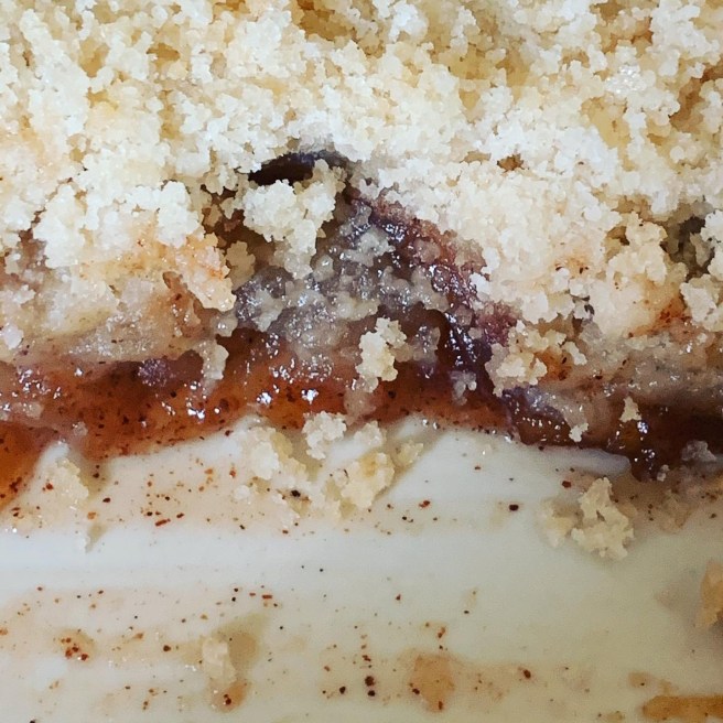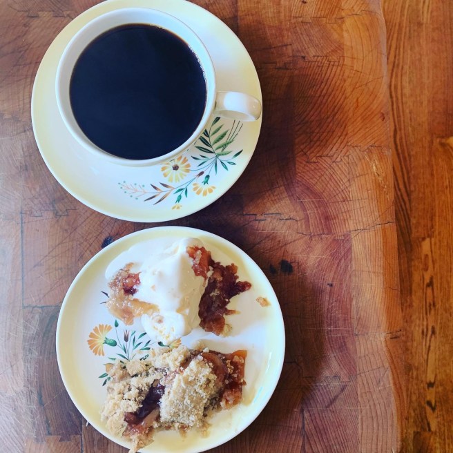 Tonight’s menu included, corn bread, watermelon, African soul fried rice with black eyed peas and red rice (a nutritional heirloom rice he discusses a little), sautéed collard greens, sorghum molasses brined chicken roasted by wrapping it in cabbage. For dessert, chicory coffee and Twitty’s mother’s apple crisp. 😋