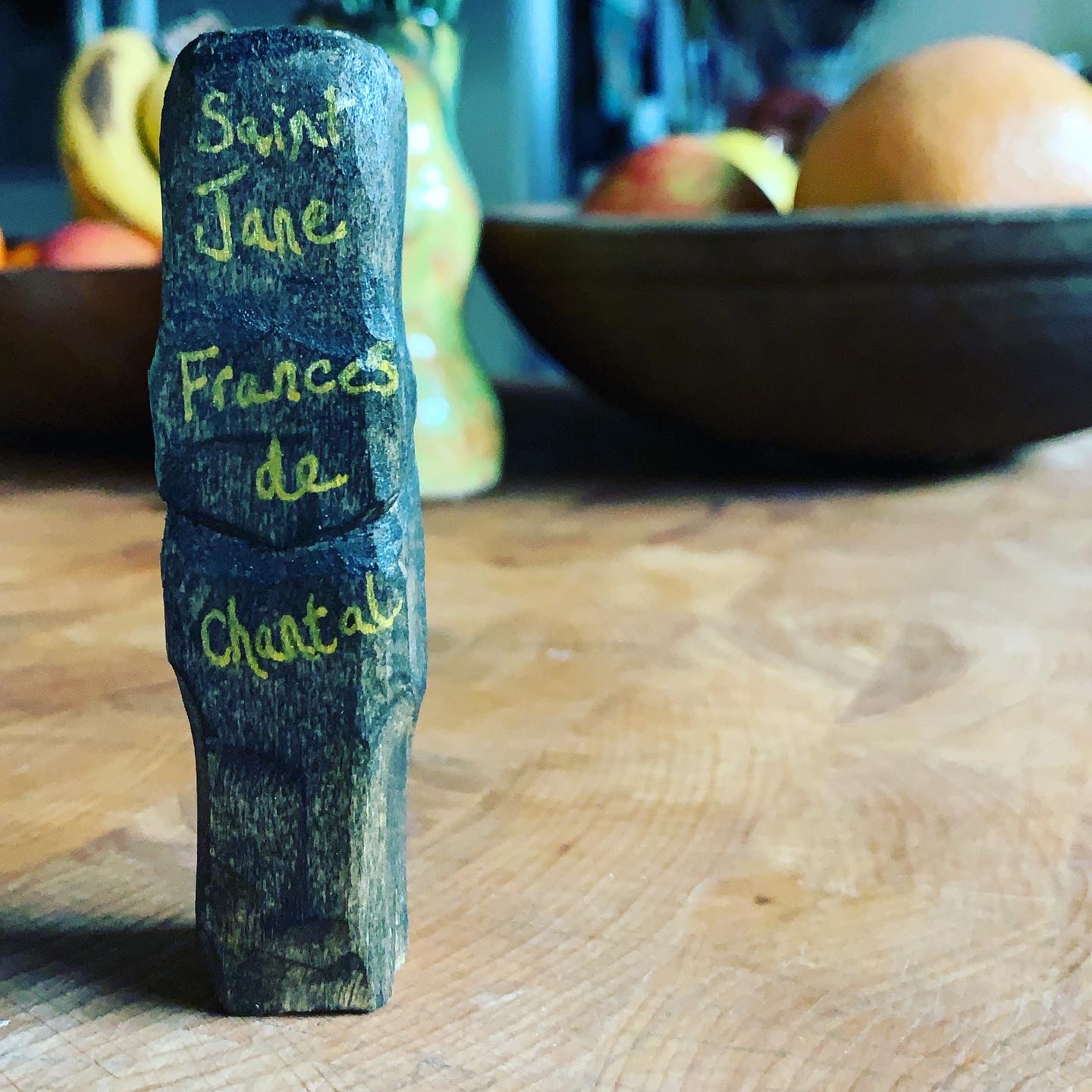 The saint in the middle was a practice one of St. Jane Francis de Chantel. The real one I gave away is below…
