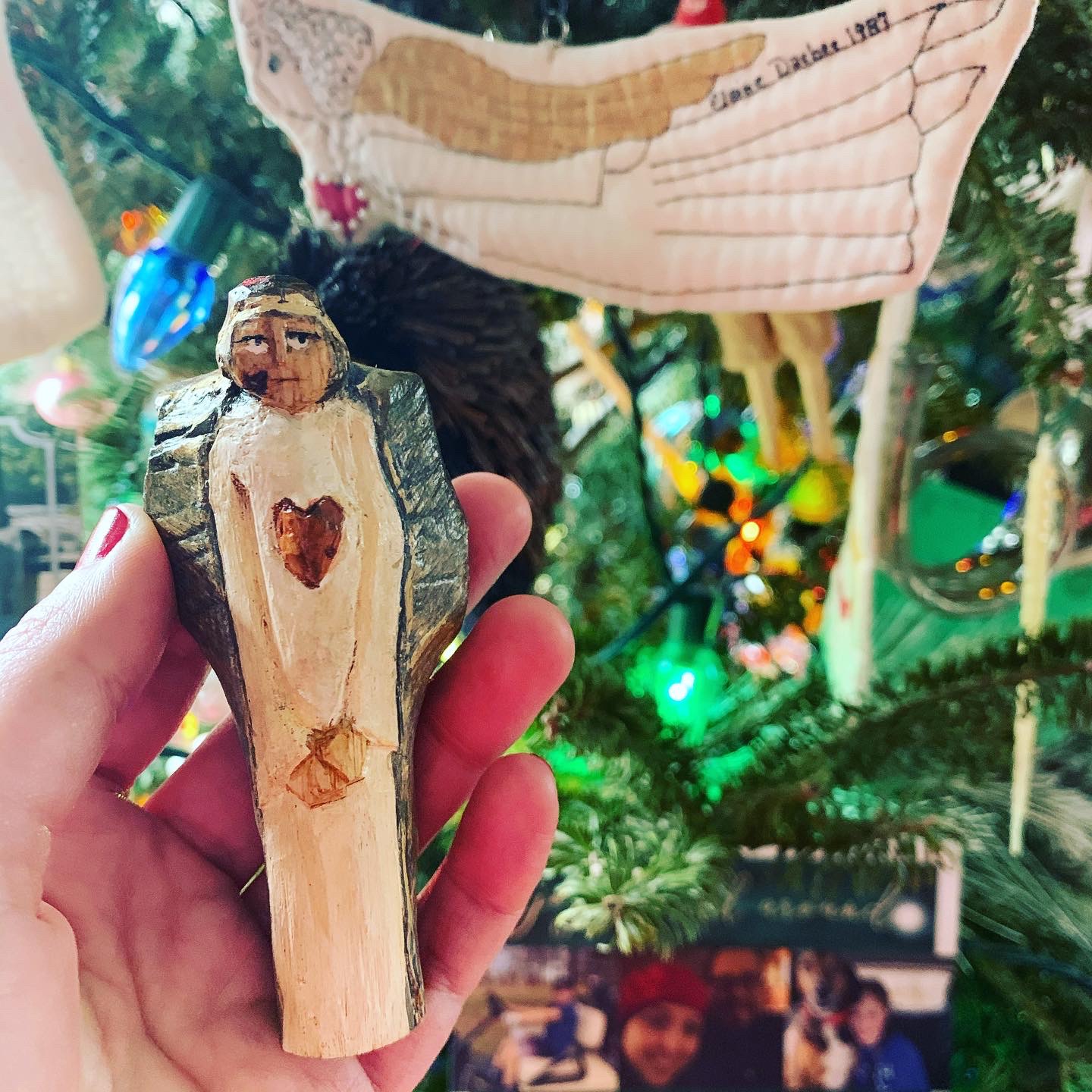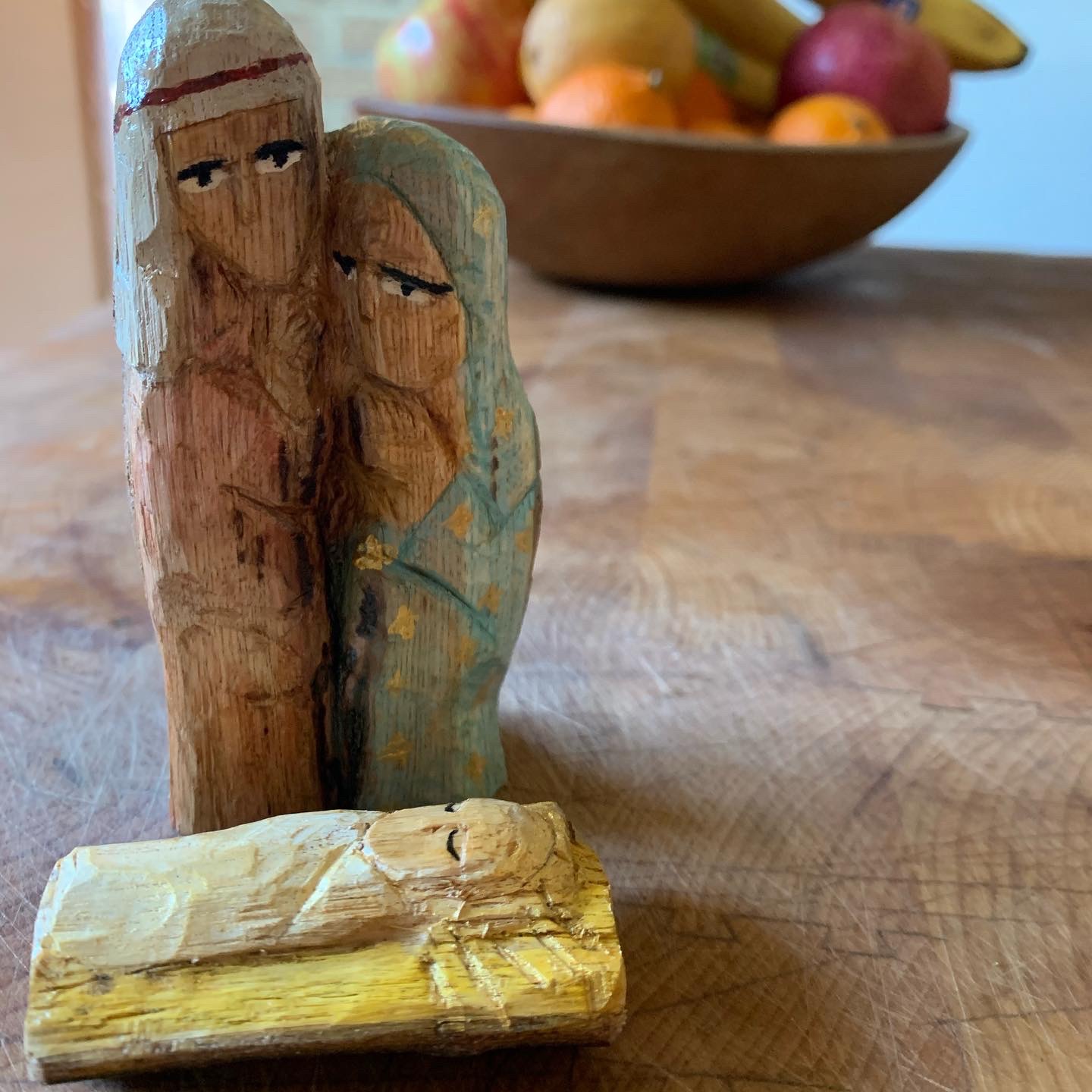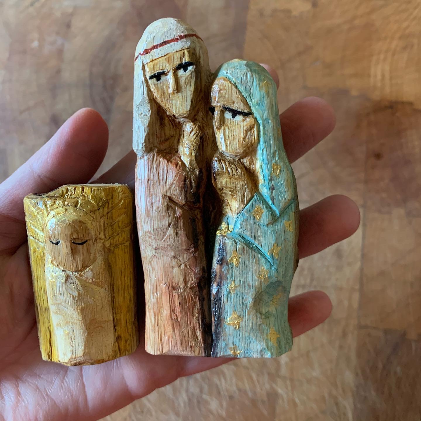 The nativity and the angel were done in oak from a special family tree. I tried to keep the integrity of the tree as much as possible.