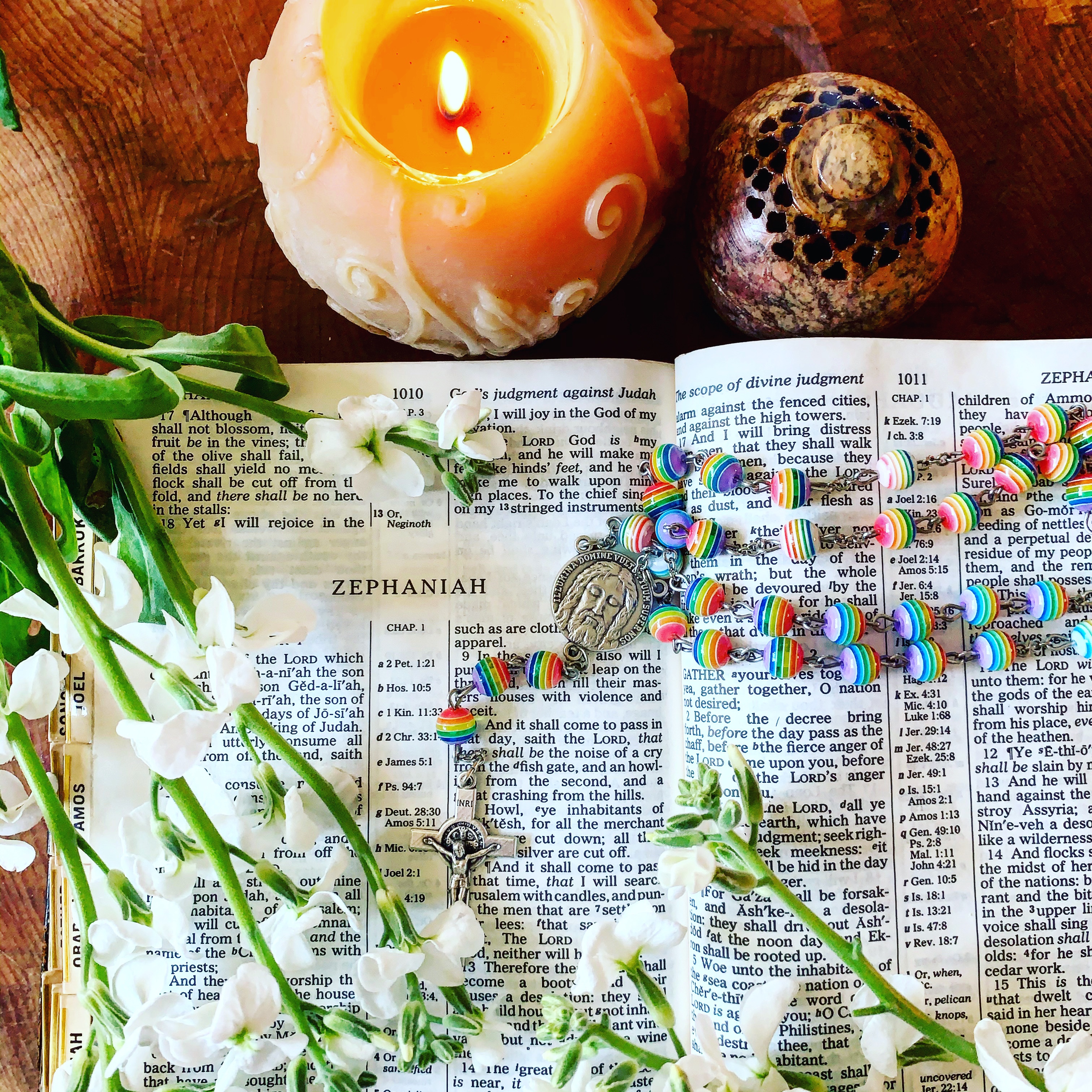 The last books of the Old Testament are the writings of prophets. The first part of Zephaniah is filled with terror, but then there is, of course, hope with faith in God. I look at a lot of these prophesies for cities and nations on an individual basis, in other words, instead of cities and nations, the words are speaking of an individual, of me, of you. And this book reminds me a lot of the story of Sodom and Gomorrah. God said he would not destroy the towns if there was a good soul to be found within the city. This is the same of us. If there is just one good bit of us that is seeking God, (love), then we cannot be destroyed, because God lives in us. God won’t allow our complete destruction because it would be like destroying God. God wants to transform us, and many times God uses the pain we carry to do this. Have hope for the good bits, try to increase them, and look to the God within you.