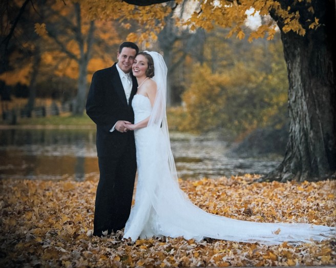 So, we were married at Addison Oaks, which is a county park, about 20 minutes from our home now where we live. And it has a large old house on the property where the weddings take place, and that’s where we had our wedding.